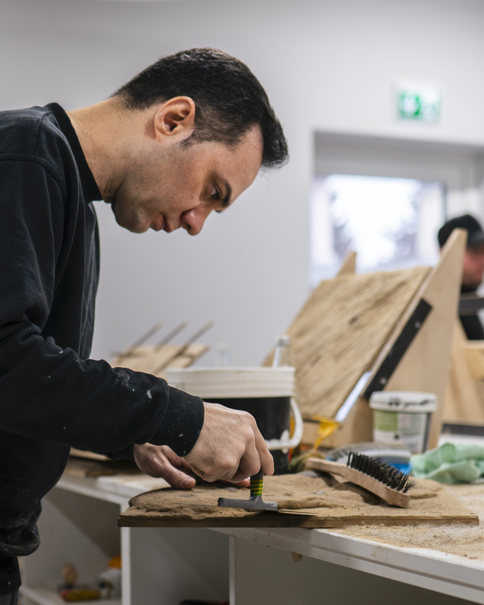 Echte Oberflächen entstehen im Prozess durch Material, Technik und Erfahrung.